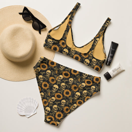 Sunflower Skull high-waisted bikini